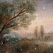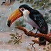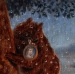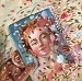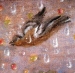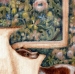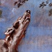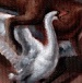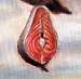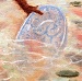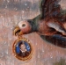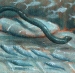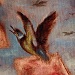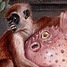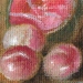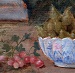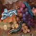 monkey, pufferfish, and peaches, oil on canvas fragment